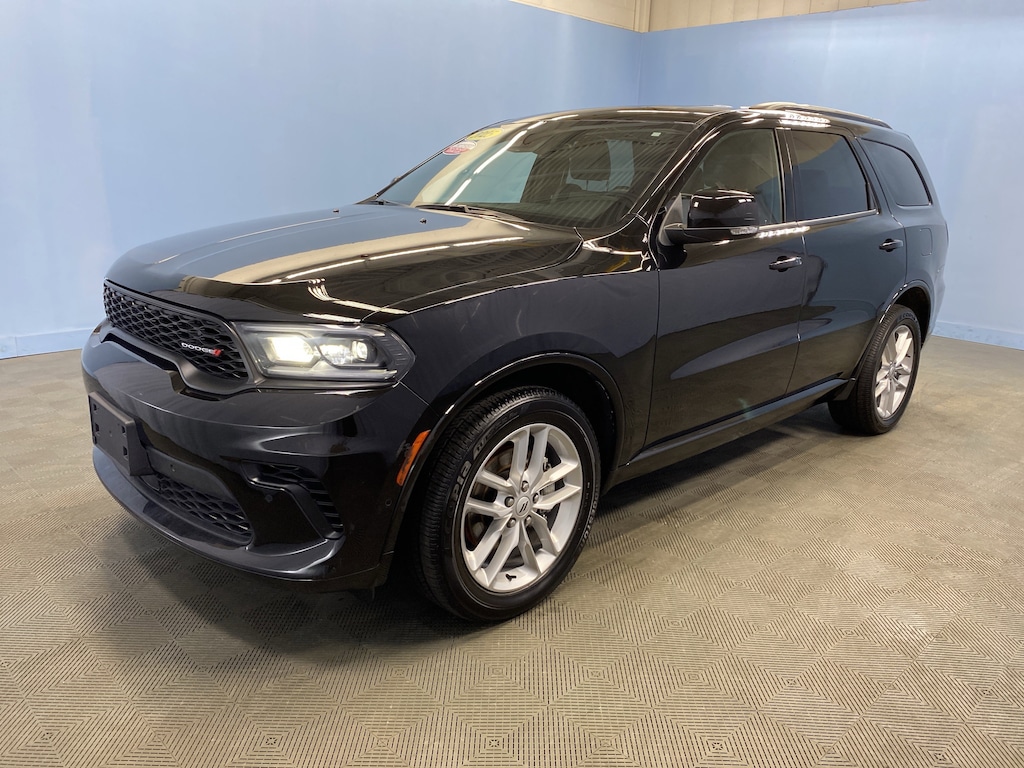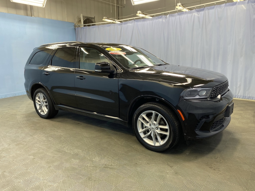 Certified. AWD. DB Black Crystal Clearcoat 2025 Dodge Durango GT Plus 3.6L V6 24V VVT 8-Speed Automatic AWD CARFAX One-Owner.