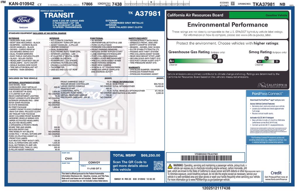 Gray Metallic 2026 Ford Transit-250 3D Cargo Van AWD 10-Speed Automatic with Overdrive EcoBoost 3.5L V6 GTDi DOHC 24V Twin Turbocharged