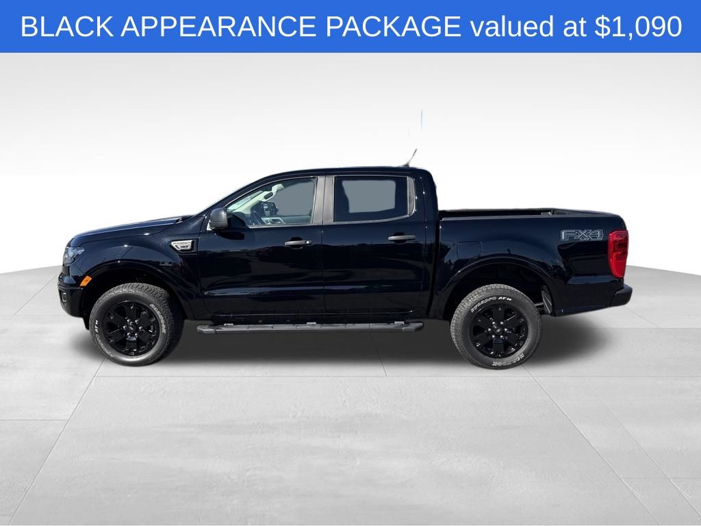 Slip behind the wheel and you'll be greeted by the Ranger's well-appointed interior, complete with heated front seats, a leather-wrapped steering wheel, and a SYNC 3 infotainment system with Apple CarPlay and Android Auto integration. The Black Appearance Package adds a touch of bold style with its black mesh grille, 18-inch black-painted aluminum wheels, and 5-inch rectangular black running boards.