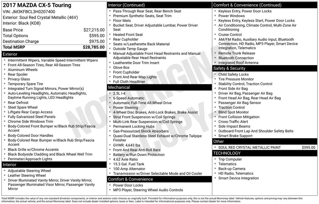 Boasting an EPA-estimated 23 city/29 highway MPG, this CX-5 Touring delivers exceptional fuel efficiency without sacrificing power or capability. Whether you're commuting to work, embarking on a weekend adventure, or transporting the whole family, this versatile SUV is ready to handle it all.